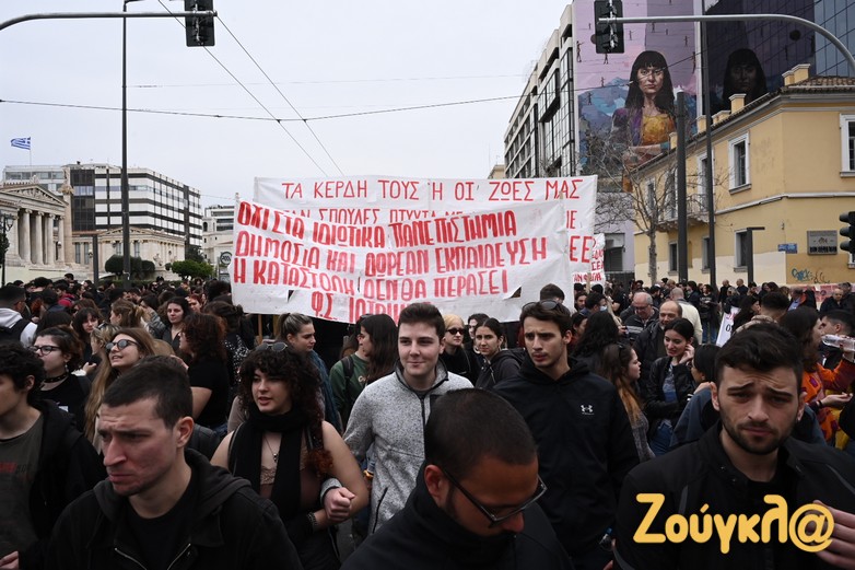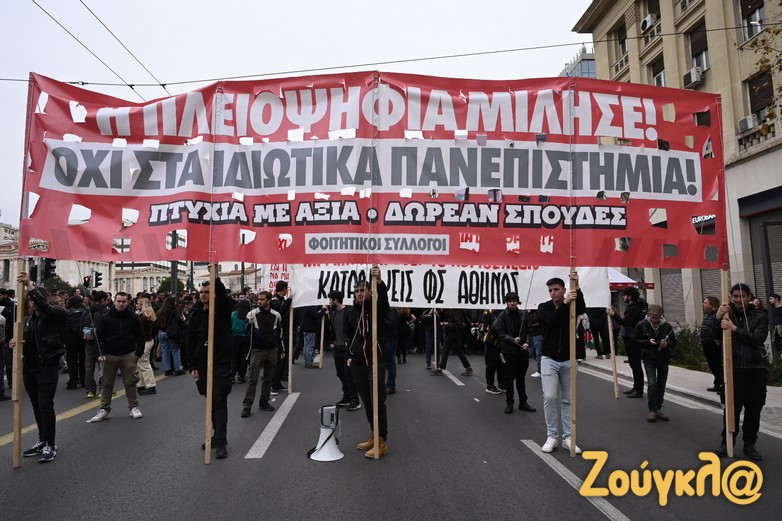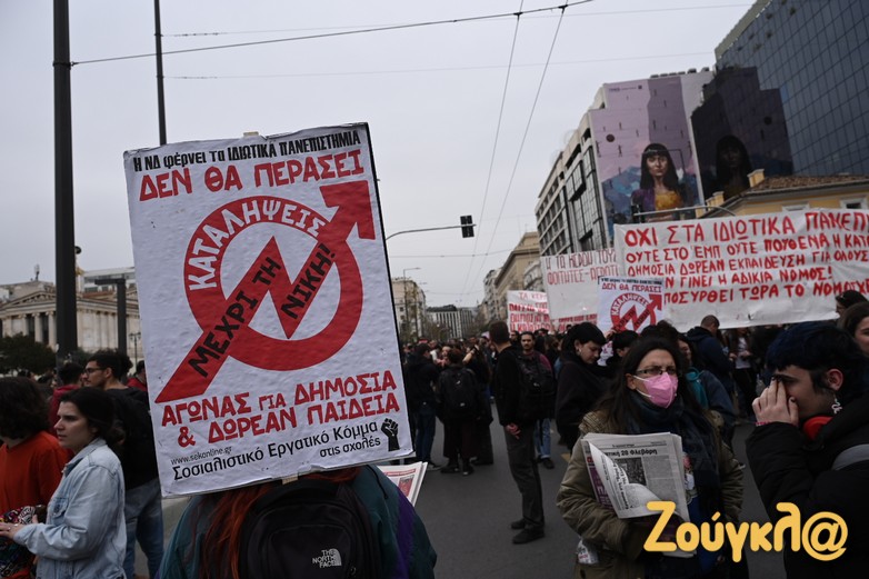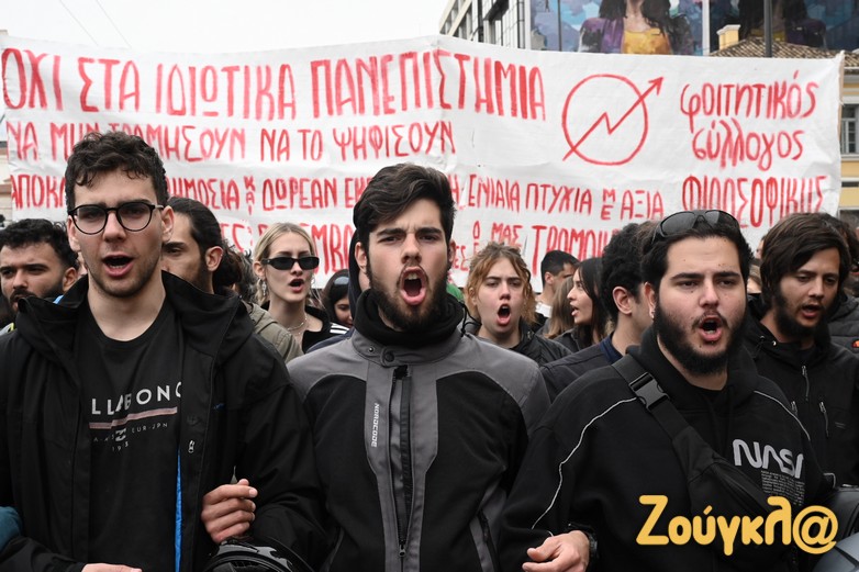 Οι συμμετέχοντες πραγματοποίησαν πορεία προς την Ομόνοια και το Σύνταγμα, όπου και διαδήλωσαν δυναμικά, εκφράζοντας την αντίθεσή τους στο υπό ψήφιση νομοσχέδιο για τα μη κρατικά Πανεπιστήμια.