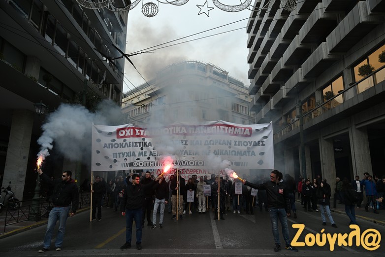 Λίγο μετά τις 12 το μεσημέρι της Πέμπτης (25/1) φοιτητές, μαθητές και εκπαιδευτικοί συγκεντρώθηκαν στα Προπύλαια και στην συνέχεια στο Πολυτεχνείο για το πανεκπαιδευτικό συλλαλητήριο, προκειμένου να δείξουν την αντίθεση τους, για τα μη κρατικά πανεπιστήμια.