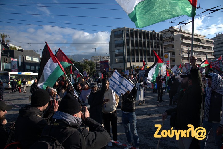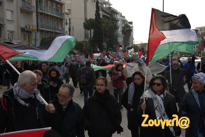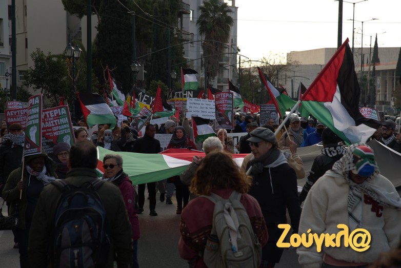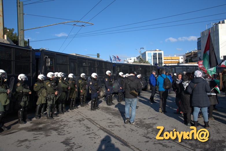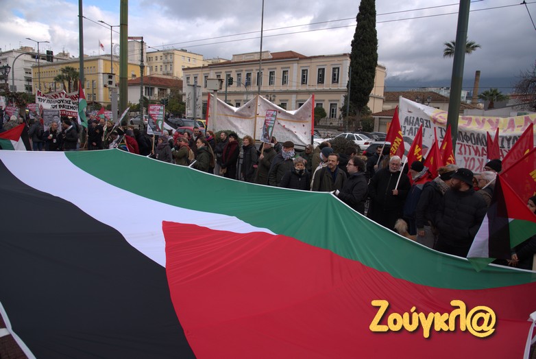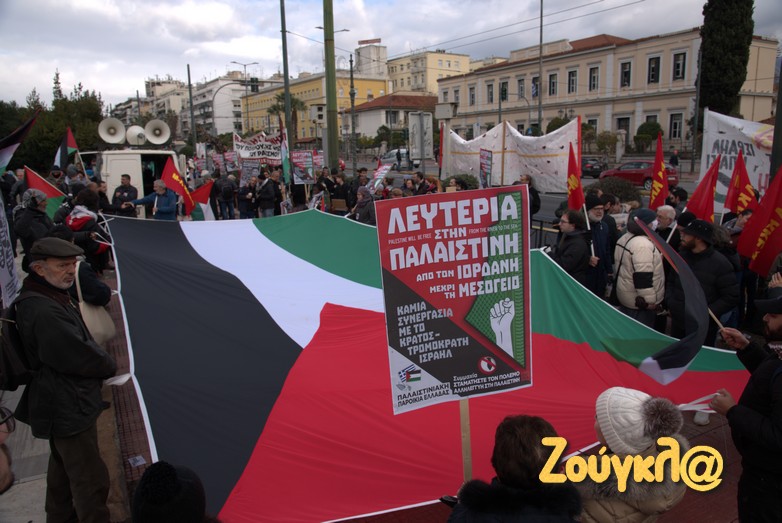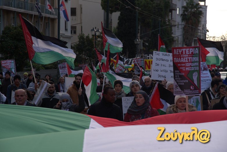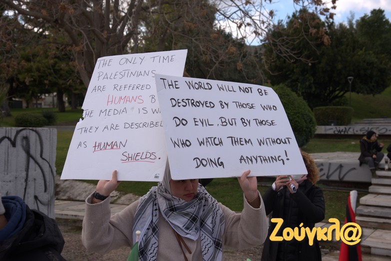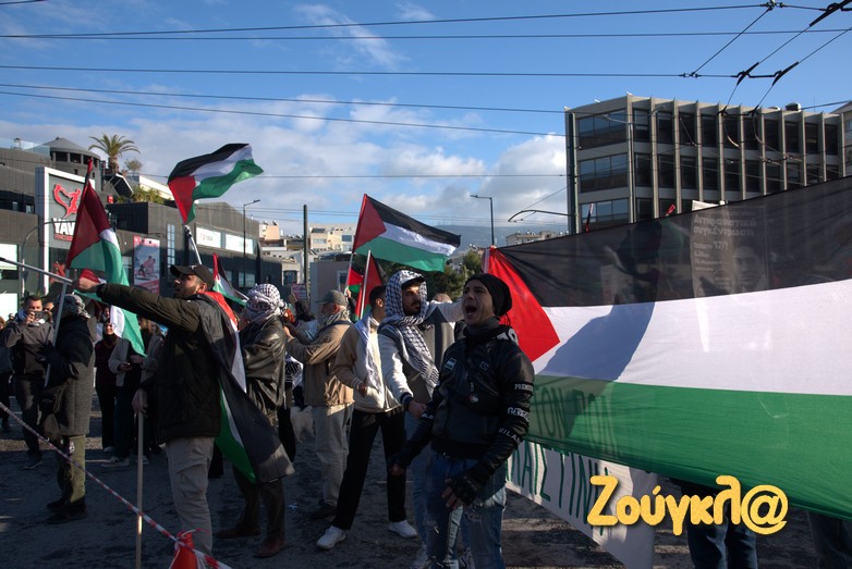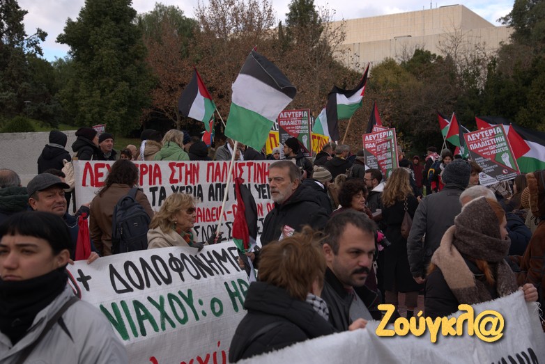 Συγκέντρωση στο Μέγαρο Μουσικής πραγματοποίησαν μετά τις 2 το μεσημέρι του Σαββάτου, Παλαιστίνιοι που διαμένον στη χώρα μας, μέλη της Παλαιστινιακής παροικίας Ελλάδος, αριστερές οργανώσεις και άλλες συλλογικότητες προκειμένου να εκφράσουν τη συμπαράστασή τους στον δοκιμαζόμενο λαό της Παλαιστίνης και την αντίθεση τους στον πόλεμο.
