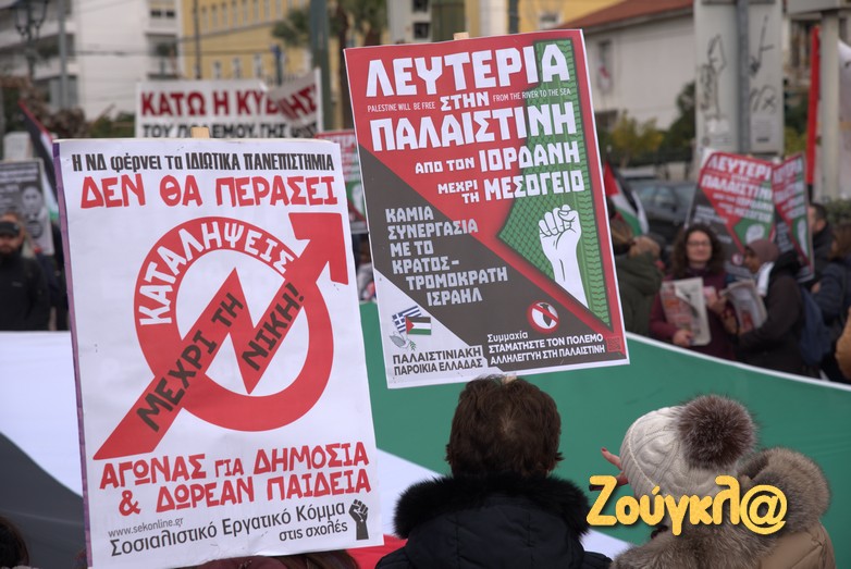 Παράλληλα, αποδοκίμασαν και τη στάση που τηρεί η Ελληνική κυβέρνηση στον συνεχιζόμενο πόλεμο μεταξύ των Ισραηλινών και των Παλαιστινίων στη Λωρίδα της Γάζας.