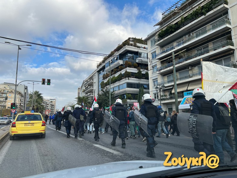 Φωνάζοντας συνεχώς συνθήματα κατά του Ισραήλ και του Μπενιαμίν Νετανιάχου και αποδοκιμάζοντας τον συνεχιζόμενο πόλεμο στη Λωρίδα της Γάζας, που έχει στοιχίσει τη ζωή σε χιλιάδες αμάχους, άνδρες, γυναίκες και μικρά παιδιά, κατευθύνθηκαν προς την πρεσβεία του Ισραήλ.