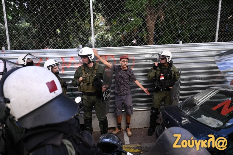 Ωστόσο κάποια στιγμή η κατάσταση ξέφυγε από τον έλεγχο με τους παρευρισκόμενους να χτυπούν τις λαμαρίνες και τις αστυνομικές δυνάμεις να κάνουν περιορισμένη χρήση χημικών, για να αποτρέψουν πιθανή μεγαλύτερη ένταση.