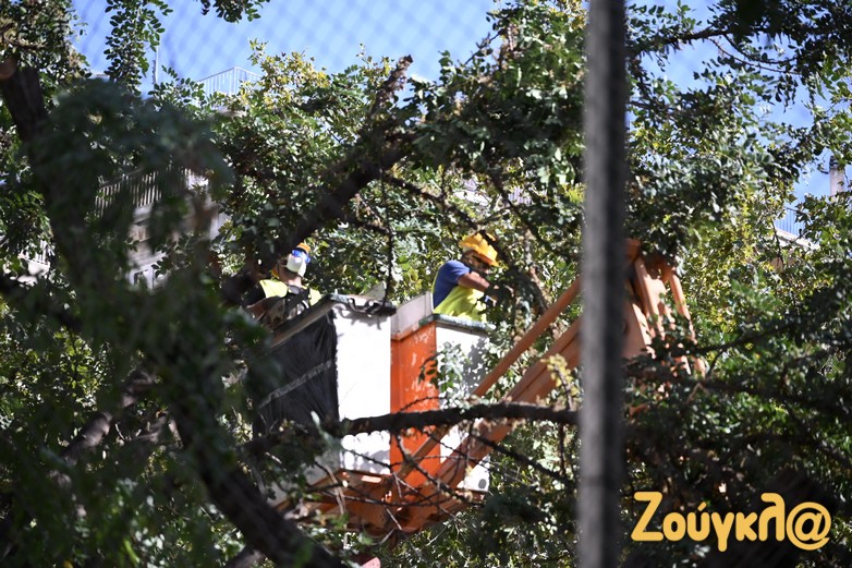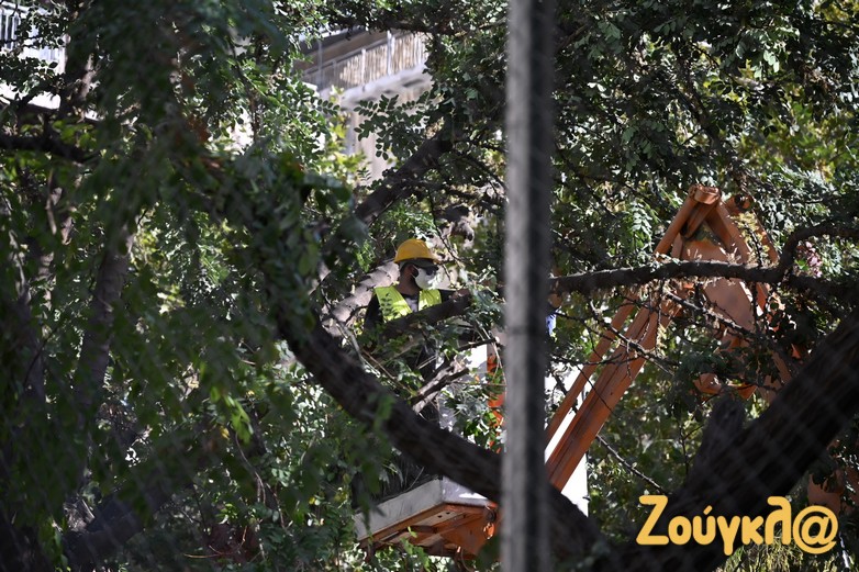 Τα συνεργεία που θα προβούν στην κοπή των δέντρων βρίσκονται ήδη στο σημείο για να ξεκινήσουν την προγραμματισμένη εργασία τους, υπό την παρουσία αστυνομικής δύναμης, ούτως ώστε να μην υπάρξουν έκτροπα.