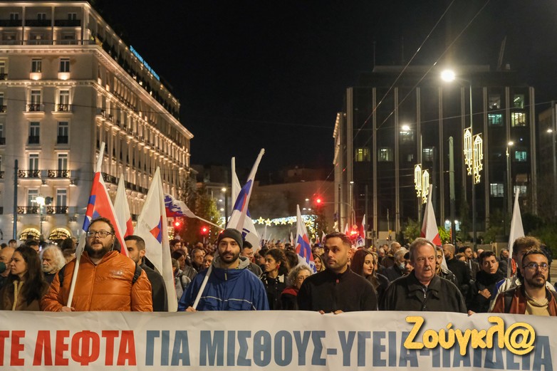 Το σύνθημα που ένωσε τον κόσμο ήταν «Δώστε λεφτά για μισθούς, υγεία και παιδεία και όχι για του πολέμου τα σφαγεία!».