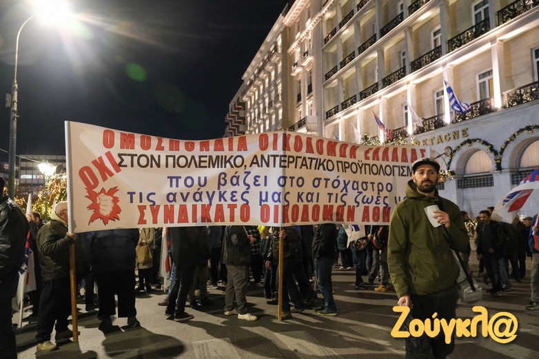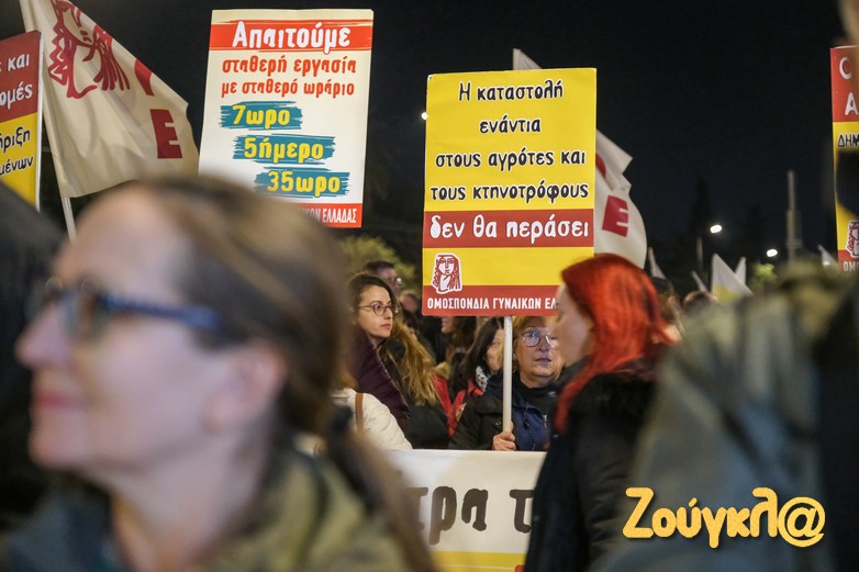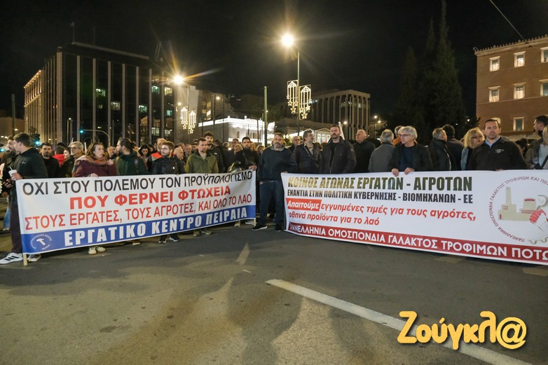 Μεταξύ άλλων στην ανακοίνωση του ΠΑΜΕ που καλούσε τον κόσμο να διαδηλώσει αναφέρει: «Μπροστά στην ψήφιση του νέου πολεμικού και ματωμένου προϋπολογισμού στη Βουλή, η «ανάπτυξη για όλους» που δήθεν «θα βελτιώσει τη ζωή των πολλών», που επικαλείται η κυβέρνηση, καταρρίπτεται καθημερινά! Για τους εργαζόμενους, τους φτωχούς αγρότες και τα αιτήματα επιβίωσης τους, όχι απλά λειτουργεί ο σταθερός κόφτης του «εκτροχιασμού της οικονομίας» και των «δημοσιονομικών ορίων», αλλά βρίσκονται αντιμέτωποι με την αστική δικαιοσύνη, και το αντιδραστικό νομοθετικό πλαίσιο που έχουν διαμορφώσει οι κυβερνήσεις.