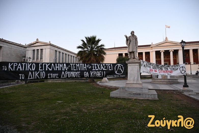 Συγκέντρωση στα Προπύλαια πραγματοποιείται αυτήν την ώρα από συλλογικότητες για το τραγικό σιδηροδρομικό δυστύχημα στα Τέμπη.