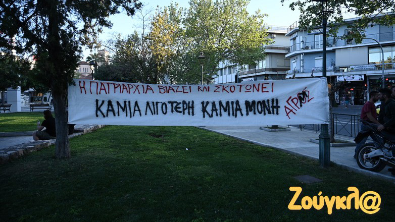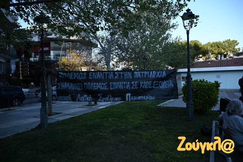 Συλλογικότητες, αλλά και διάφορες ομάδες, είχαν κρεμάσει πανό στο σημείο με συνθήματα όπως: «Η πατριαρχία βιάζει και σκοτώνει. Καμία λιγότερη, καμία μόνη».