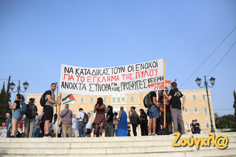 Συγκέντρωση διαμαρτυρίας πραγματοποιήθηκε το απόγευμα της Δευτέρας (20/5) στο Σύνταγμα με αφορμή την έναρξη της δίκης για το ναυάγιο στην Πύλο με κατηγορούμενους 9 Αιγύπτιους. Στο κάλεσμα γίνεται λόγος για συγκάλυψη ενώ αναφέρεται πως «η δίκη των 9 επιζώντων του ναυαγίου της Πύλου είναι μια ωμή κυβερνητική παρέμβαση για να φορτώσει τις ευθύνες της για τη δολοφονία των 600 προσφύγων στα ίδια τα θύματα».