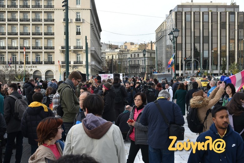 Συγκέντρωση πραγματοποιείται από το απόγευμα της Πέμπτης (15/02) στο Σύνταγμα από ομάδα ατόμων που τάσσεται υπέρ της ψήφισης του νομοσχεδίου για τον γάμο των ομόφυλων ζευγαριών και της τεκνοθεσίας.