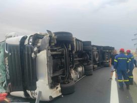 Το πρωί της Παρασκευής (18/7) για άγνωστη μέχρι στιγμής αιτία, ανετράπη νταλίκα στο 208ο χιλιόμετρο της Εγνατίας Οδού, από Ηγουμενίτσα προς Κήπους, στο ύψος της ΤΚ Δρεπάνου Κοζάνης.
