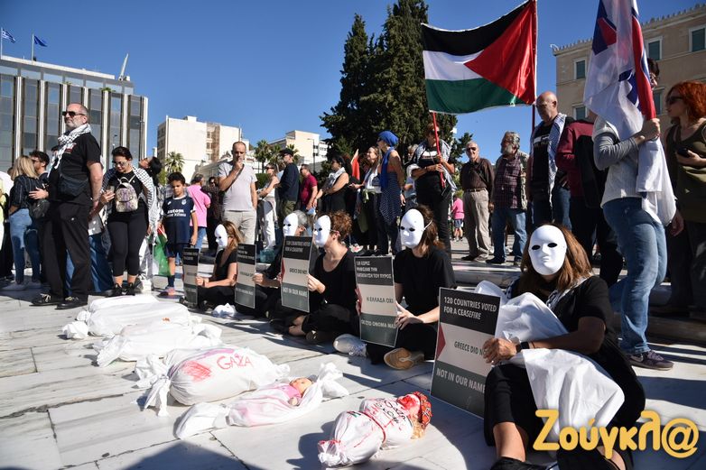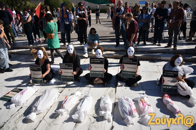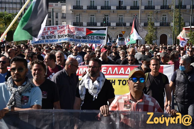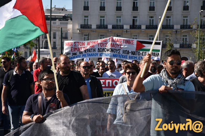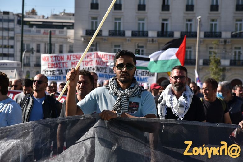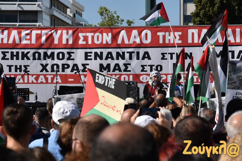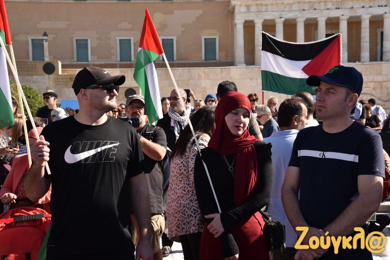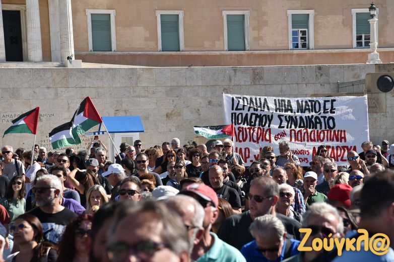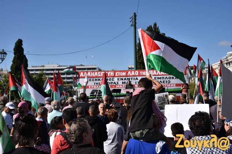 Συλλαλητήριο με σύνθημα «Αλληλεγγύη στον λαό της Παλαιστίνης» πραγματοποίησαν σήμερα, Κυριακή 5 Νοεμβρίου, τα μέλη του ΠΑΜΕ στην πλατεία Συντάγματος για να εκφράσουν τη συμπαράστασή τους στον παλαιστινιακό λαό. Στο σημείο υπολογίζεται πως είχαν συγκεντρωθεί πάνω από 2.000 άτομα, ενώ πραγματοποιήθηκε και συναυλία αλληλεγγύης.
