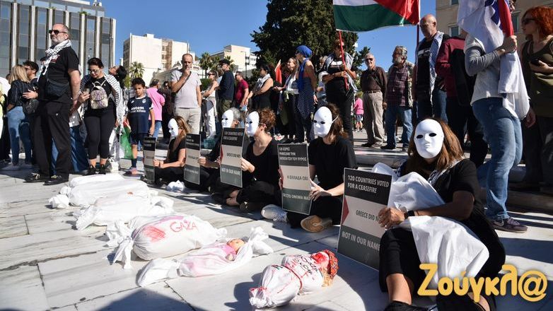 Συλλαλητήριο με σύνθημα «Αλληλεγγύη στον λαό της Παλαιστίνης» πραγματοποίησαν σήμερα, Κυριακή 5 Νοεμβρίου, τα μέλη του ΠΑΜΕ στην πλατεία Συντάγματος για να εκφράσουν τη συμπαράστασή τους στον παλαιστινιακό λαό. Στο σημείο υπολογίζεται πως είχαν συγκεντρωθεί πάνω από 2.000 άτομα, ενώ πραγματοποιήθηκε και συναυλία αλληλεγγύης.