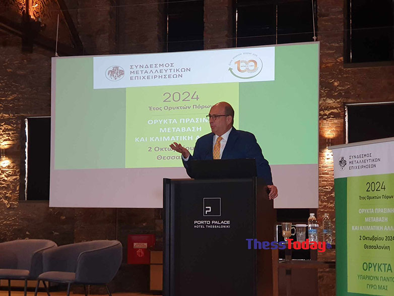 Τη θέση του ότι οικονομική και γεωπολιτική σταθερότητα στην Ευρώπη δεν μπορεί να υπάρχει χωρίς ασφάλεια στην εφοδιαστική αλυσίδα πρώτων υλών, διατύπωσε εμφατικά ο πρόεδρος του Συνδέσμου Μεταλλευτικών Επιχειρήσεων Ελλάδας (ΣΜΕ), Κωνσταντίνος Γιαζιτζόγλου, μιλώντας από το βήμα αποψινής εκδήλωσης που έγινε στη Θεσσαλονίκη με θέμα «Ορυκτά, Πράσινη Μετάβαση, Κλιματική Αλλαγή -2024 Έτος Ορυκτών Πόρων-Είναι παντού γύρω μας».