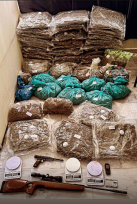 Στη συνέχεια, και αφού συνειδητοποίησε την δύσκολη θέση του καθώς πιάστηκε με ένα αυτοκίνητο γεμάτο ναρκωτικά, φέρεται να αποκάλυψε μόνος του ότι μέσα στο σπίτι του υπήρχαν ένα αεροβόλο πιστόλι, μια καραμπίνα, ένα πλαστό δελτίο ταυτότητας, κινητό τηλέφωνο και 4 ηλεκτρονικές ζυγαριές ακριβείας.