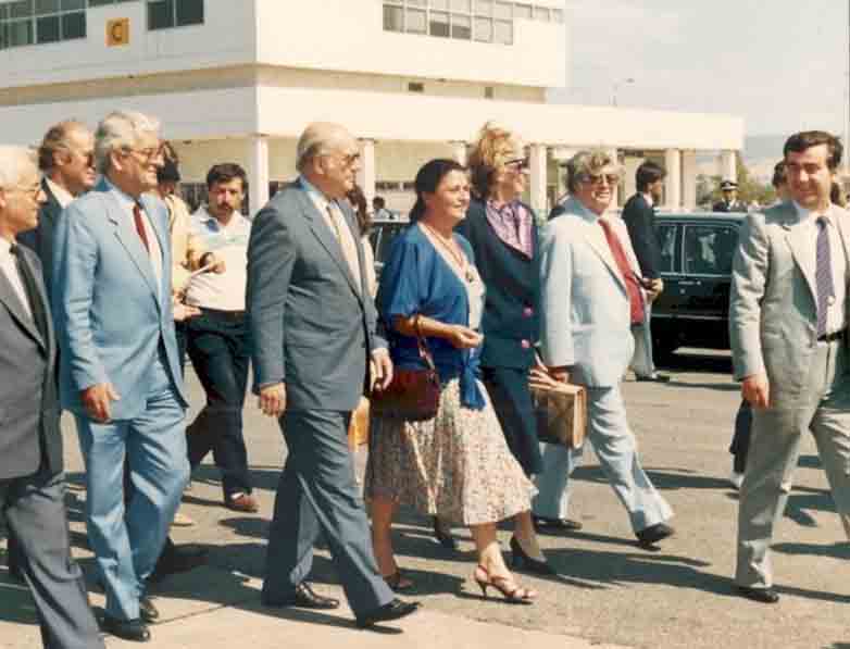 Η Ελένη Παπαδοπούλου δίπλα στον Ανδρέα Παπανδρέου και την σύζυγο του Μαργαρίτα, μαζί με τον σύζυγο της υπουργό Γιάννη Παπαδόπουλο που είναι αριστερά του Ανδρέα