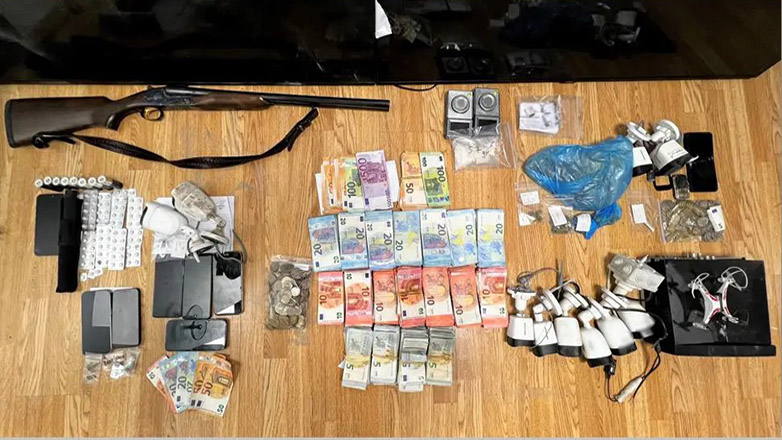 Ακολούθως, εντοπίστηκαν και συνελήφθησαν τα δύο μέλη της συμμορίας, ενώ από τις έρευνες που πραγματοποιήθηκαν σε οικίες στην Αγία Βαρβάρα, καθώς και από την κατοχή των συλληφθέντων, βρέθηκαν και κατασχέθηκαν: