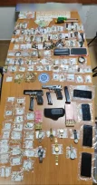 Σε έρευνες που διενεργήθηκαν στους κατηγορούμενους, στις οικίες τους και σε ξενοδοχείο στην Αλεξάνδρεια και στην Θεσσαλονίκη, βρέθηκαν και κατασχέθηκαν -3- αυτοκίνητα, το χρηματικό ποσό των -1.300- ευρώ, -58- φυσίγγια, -2- πιστόλια, με γεμιστήρες, πλήθος τιμαλφών – ρολογιών και πλήθος συσκευών κινητής τηλεφωνίας και καρτών SIM.