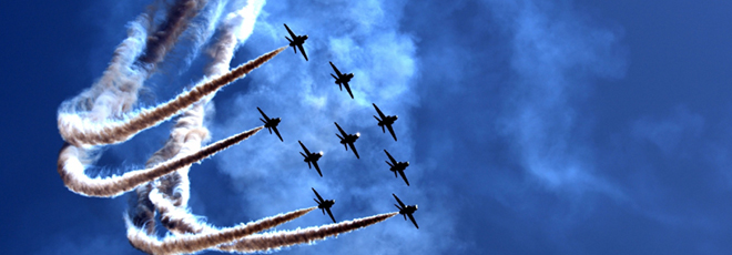 (Εντυπωσιακά ακροβατικά πέντε αεροσκαφών της ιταλικής Blue Circle Team)
