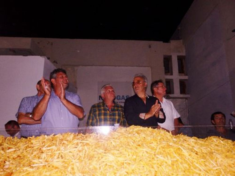 Με 554 κιλά τηγανητής πατάτας Νάξου οι παραγωγοί της ΕΑΣ Νάξου, αλλά και το πλήθος του κόσμου που είχε συρρεύσει στο 8ο Φεστιβάλ Πατάτας Νάξου πανηγύρισαν την κατάρριψη του ρεκόρ Γκίνες το βράδυ του Σαββάτου 15 Ιουλίου 2017!