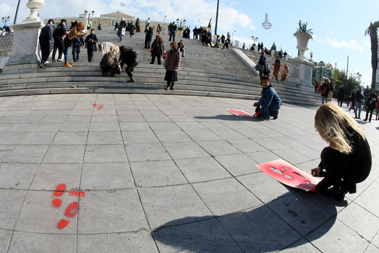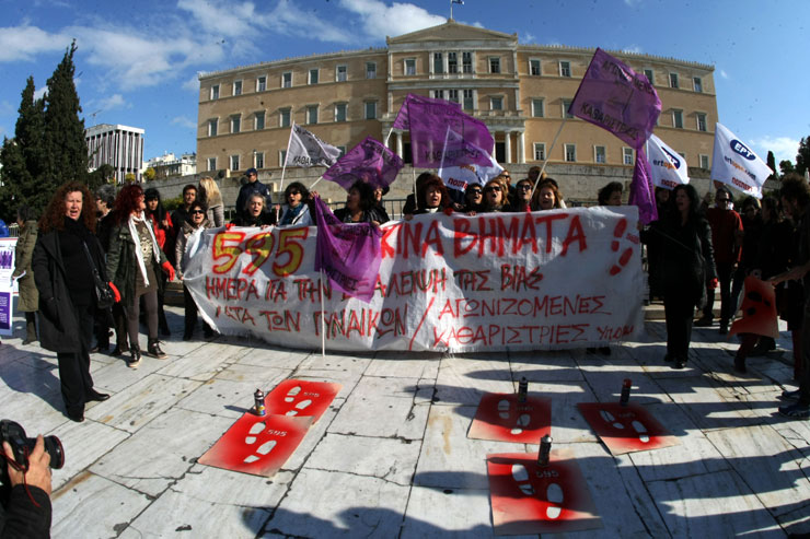 Απολυμένες καθαρίστριες του υπ. Οικονομικών χάραξαν τα 595 βήματα ως την Βουλή στο πλαίσιο των εκδηλώσεων για την Παγκόσμια Ημέρα Εξάλειψης της Βίας κατά των Γυναικών.