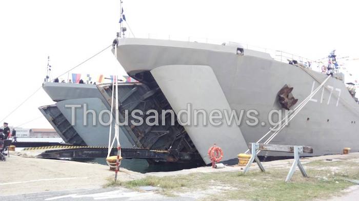 Τα αρματαγωγά «Ρόδος» και «Λέσβος» βρίσκοντα ήδη στο λιμάνι της Θεσσαλονίκης, με την ευκαιρία του εορτασμού της εθνικής επετείου της 28ης Οκτωβρίου 1940.