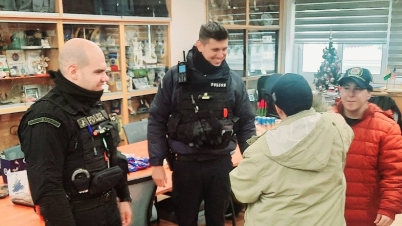 Αφού τα παιδιά τραγούδησαν τα κάλαντα των Χριστουγέννων, αντάλλαξαν ευχές και μοιράστηκαν μαζί με τους αστυνομικούς, ένα γεύμα αγάπης.