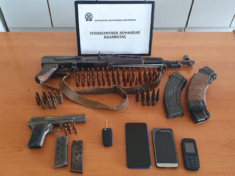 Στήθηκε επιχείρηση και αστυνομικοί της ΕΚΑΜ εισέβαλαν στο διαμέρισμα όπου κοιμόταν ο επικίνδυνος κακοποιός. Λίγο αργότερα βρήκαν ένα Καλάσνικοφ, ένα πιστόλι και φυσίγγια. Ο 44χρονος, ψυχρός και κυνικός, τους ακολούθησε μέχρι το γραφείο του εισαγγελέα Καλαμάτας, ο οποίος, όταν άνοιξε τον φάκελό του, είδε σχεδόν όλα τα αδικήματα του ποινικού κώδικα.