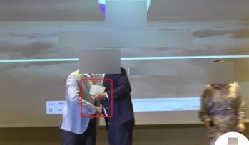 Η εταιρεία που προμηθεύει τις πανεπιστημιακές κλινικές αποδίδει τιμητική πλακέτα στον εμπλεκόμενο με τις υπερτιμολογήσεις Διευθυντή Χειρουργό Χ.Π. Την πλακέτα δίνει ο διευθυντής της εταιρείας που παίρνει τις προμήθειες