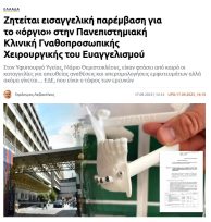 Για τα έργα και τις ημέρες του συγκεκριμένου Διευθυντή Χειρουργού έχουν ήδη ενημερωθεί μεταξύ άλλων, ο Πρόεδρος της Οδοντιατρικής Σχολής του ΕΚΠΑ κ. Νικόλαος Νικητάκης, αλλά και ο Πρύτανης του ΕΚΠΑ, καθηγητής Γεράσιμος Σιάσος.