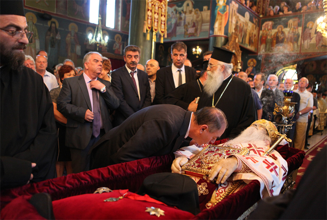 Σε κλίμα συγκίνησης και με κάθε επισημότητα Προεξάρχοντος του Αρχιεπισκόπου Αθηνών και Πάσης Ελλάδος κ. Ιερώνυμου τελέστηκε σήμερα η εξόδιος ακολουθία του Μακαριστού Μητροπολίτη Γρεβενών κυρού Σεργίου στον Ιερό Μητροπολιτικό Ναό Αγίου Αχιλλείου Γρεβενών.