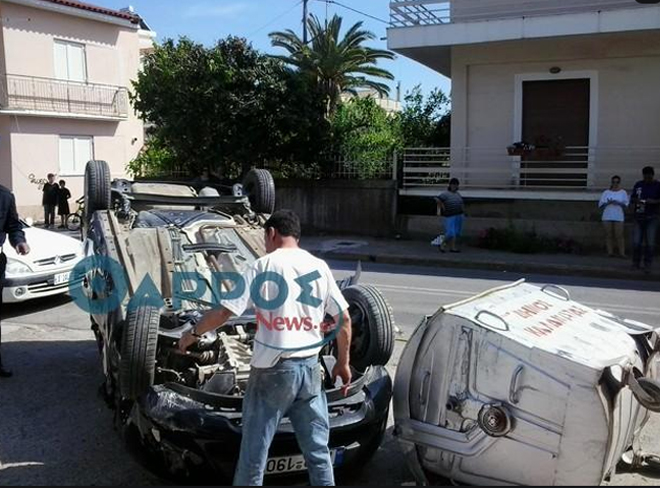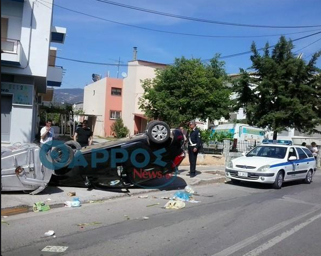 Το όχημα με κατεύθυνση το κέντρο της πόλης στην οδό Λακωνίκης χτύπησε πάνω σε κάδο και αναποδογύρισε.
