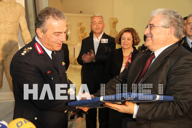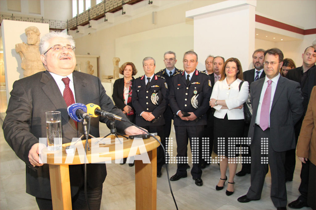 «Σήμερα αποκαθίσταται η βαθιά ρωγμή που άφησε στον πολιτισμό η ιεροσυλία του περασμένου Φεβρουαρίου» δήλωσε ο Αναπληρωτής Υπουργός ΠΑΙΘΠΑ αρμόδιος για θέματα Πολιτισμού κ. Κώστας Τζαβάρας στη λιτή τελετή που πραγματοποιήθηκε στο Μουσείο Ιστορίας των Ολυμπιακών Αγώνων στην Αρχαία Ολυμπία, με την ευκαιρία της απόδοσης στο κοινό συμπληρωμένης της έκθεσης με τα ανακτηθέντα κινητά μνημεία που είχαν κλαπεί από το Μουσείο στις αρχές του χρόνου.