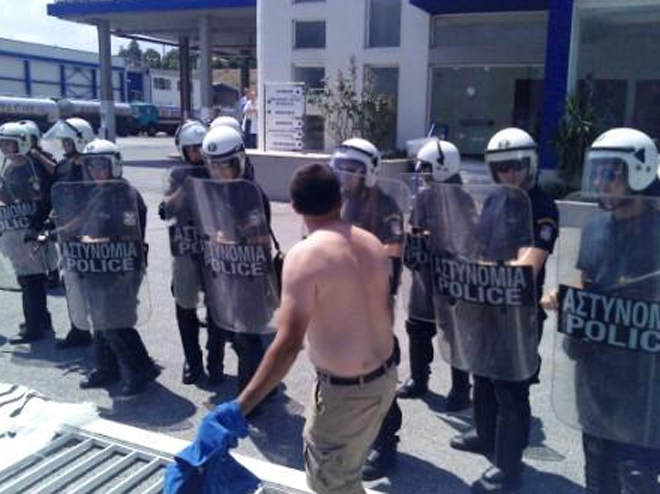 H ηρεμία επανήλθε λίγο μετά τις 14.30. Ένας κτηνοτρόφος διακομίστηκε στο νοσοκομείο με αναπνευστικά προβλήματα λόγω της εκτεταμένης χρήσης δακρυγόνων.
