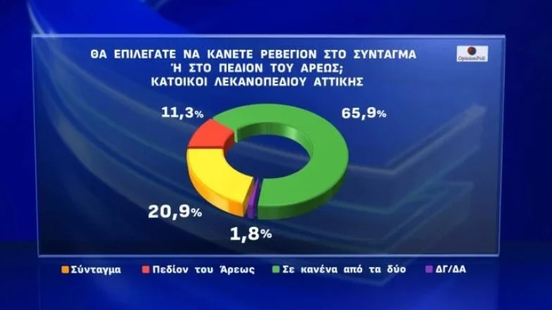 Αν και μεταξύ των δύο νικητής είναι ο Χάρης Δούκας (20,9% έναντι 11,3% του Χαρδαλιάς), η συντριπτική πλειοψηφία των Αθηναίων απαντά «σε κανένα από τα δύο» (65,9%).