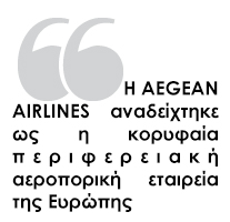 Σημαντική ήταν και η επιτυχία για τις αερομεταφορές μας, καθώς η AEGEAN AIRLINES αναδείχτηκε ως η κορυφαία περιφερειακή αεροπορική εταιρεία της Ευρώπης.