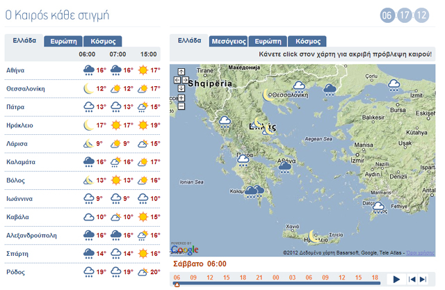 Επίσης έχετε την ευκαιρία να μαθαίνετε όλες τις πληροφορίες για τον καιρό σε Ελλάδα και Ευρώπη. Για την ένταση των ανέμων, για τις περιοχές, όπου θα σημειωθεί βροχόπτωση, χιονόπτωση, τις νεφώσεις και την θερμοκρασία.