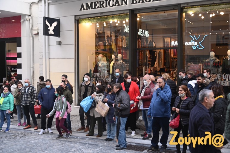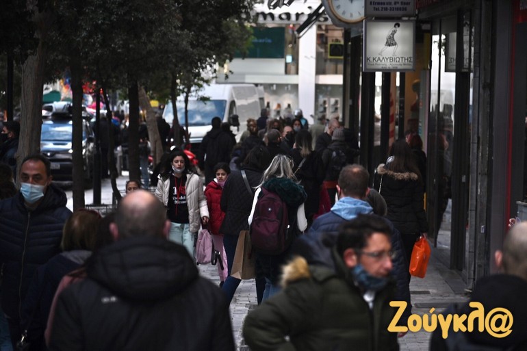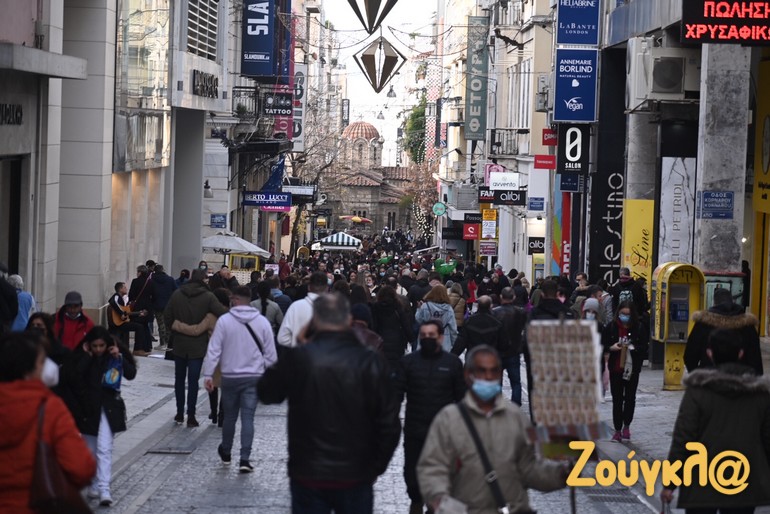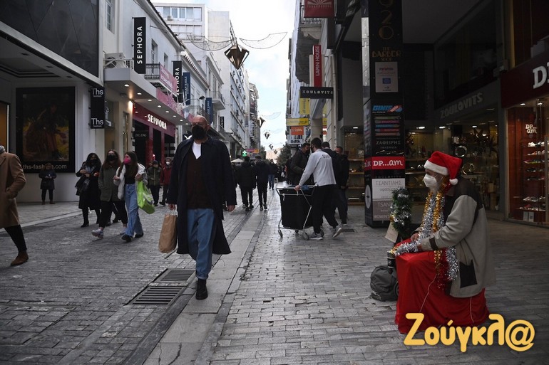 Γεμάτη από κόσμο ήταν η οδός Ερμού στο κέντρο της Αθηνας το πρωί της Παρασκευής, Παραμονή Πρωτοχρονιάς, με τους πολίτες να τρέχουν κυριολεκτικά την τελευταία στιγμή να κάνουν τα ψώνια τους είτε για το γιορτινό τραπέζι είτε για τα δώρα των αγαπημένων προσώπων.