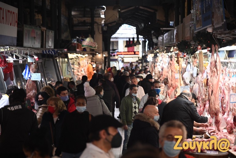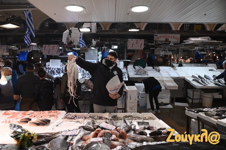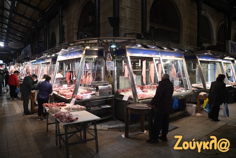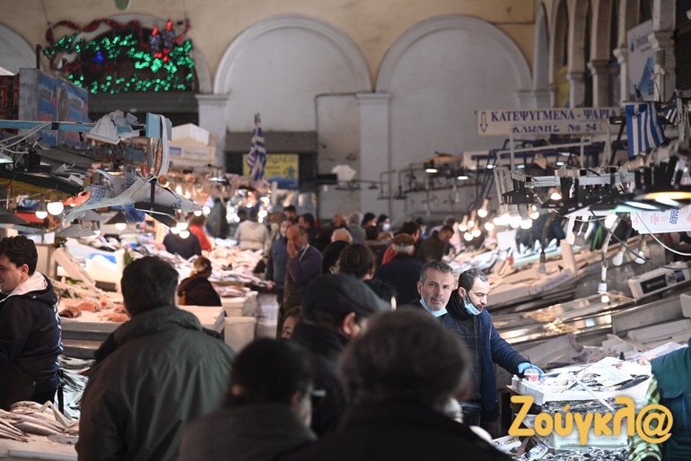 Και στη Βαρβάκειο Αγορά η κίνηση ήταν σχετικά έντονη, αφού πολλές οικογένειες δεν κατάφεραν να ολοκληρώσουν τα ψώνια τους για το γιορτινό τραπέζι τις προηγούμενες ημέρες, με αποτέλεσμα να επισκευθούν τους πάγκους με τα κρεατικά και τα θαλασσινά για να ψωνίσουν… έστω και την τελευταία στιγμή, όπως κατέγραψε ο φωτογραφικός φακός της «Ζούγκλας».