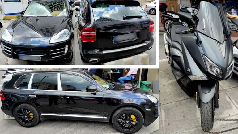 Σε έρευνες που πραγματοποιήθηκαν σε εννιά (9) οικίες των μελών της οργάνωσης καθώς και σε εννιά (9) οχήματα, τα οποία αποτελούν μέσα τέλεσης των έκνομων ενεργειών τους (τέσσερις (4) μοτοσικλέτες και πέντε (5) αυτοκίνητα) βρέθηκαν και κατασχέθηκαν συνολικά :