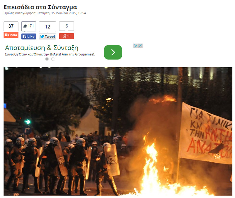 Τα βίαια επεισόδια που ξέσπασαν στο Σύνταγμα το απόγευμα της Τετάρτης μεταδόθηκαν λεπτό προς λεπτό από το zougla.gr.