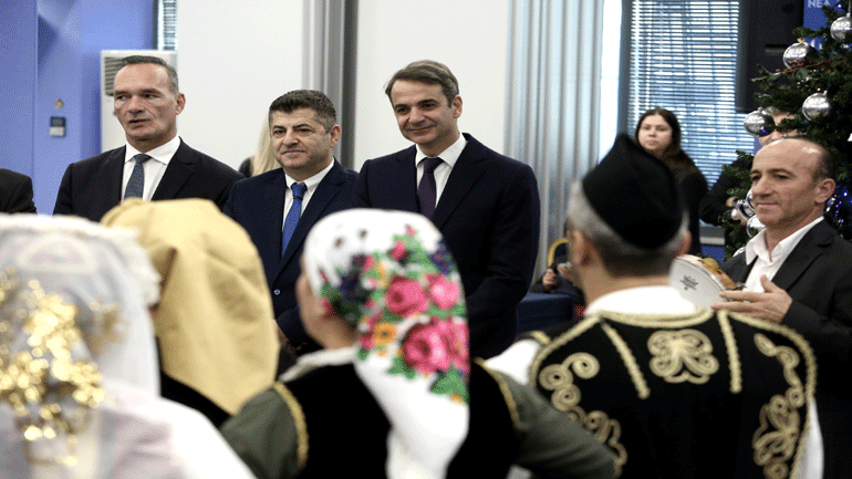 Τα κάλαντα από τον Σύλλογο Βορειοηπειρωτών «Ομόνοια», τον Σύλλογο Κρητών «Ασή Γωνιά» και τα παιδιά του κέντρου προστασίας ανηλίκων «Φάρος του Κόσμου» άκουσε σήμερα ο πρόεδρος της ΝΔ, Κυριάκος Μητσοτάκης, στα γραφεία του κόμματος.