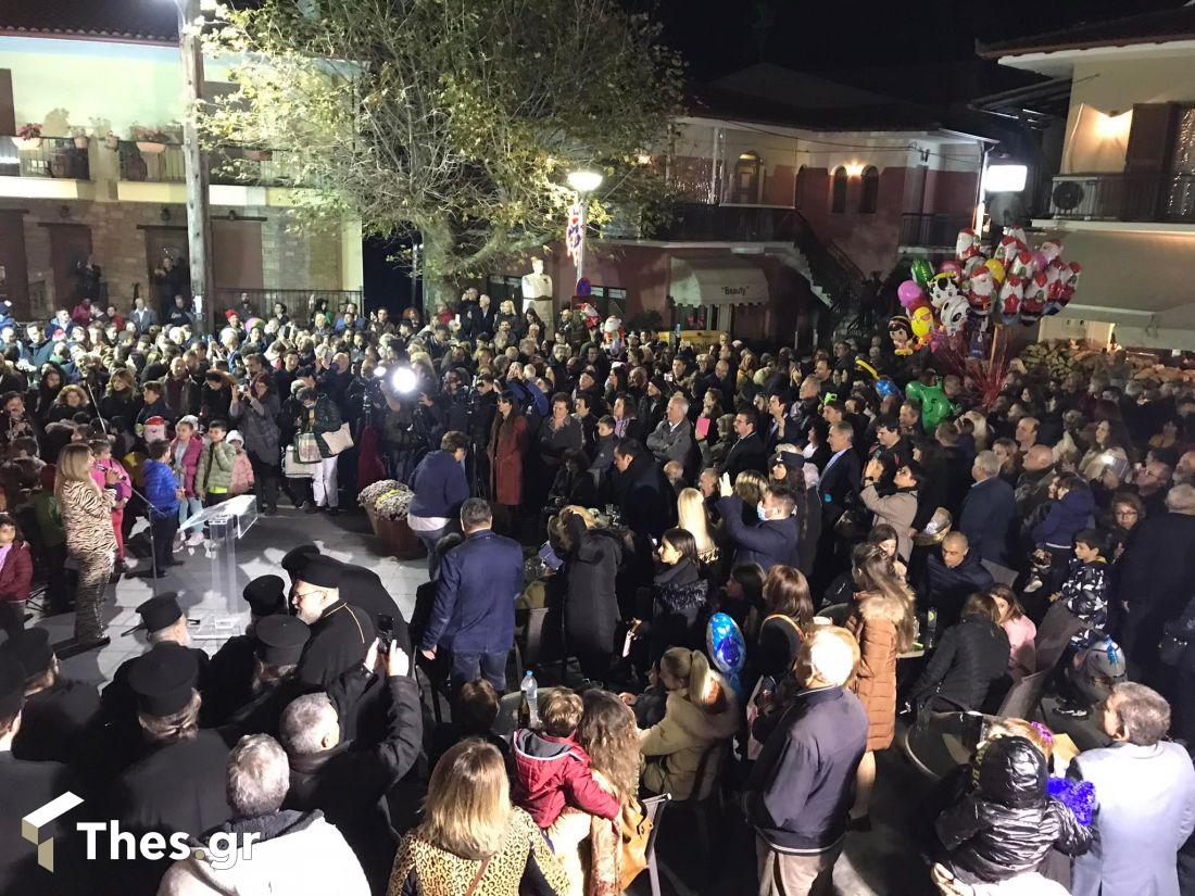 Μετά από την αντίστροφη μέτρηση στην οποία βοήθησαν τα παιδιά, φωταγωγήθηκε το 16 μέτρων ύψους έλατο που βρίσκεται στην κεντρική πλατεία του παραδοσιακού χωριού και είναι στολισμένο με 85.000 led λαμπάκια.