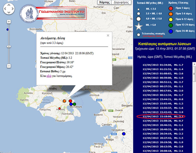 Ισχυρός σεισμός 5,9 Ρίχτερ νότια της Λήμνου, Πρώτη καταχώρηση: Τρίτη, 8 Ιανουαρίου 2013, 16:28