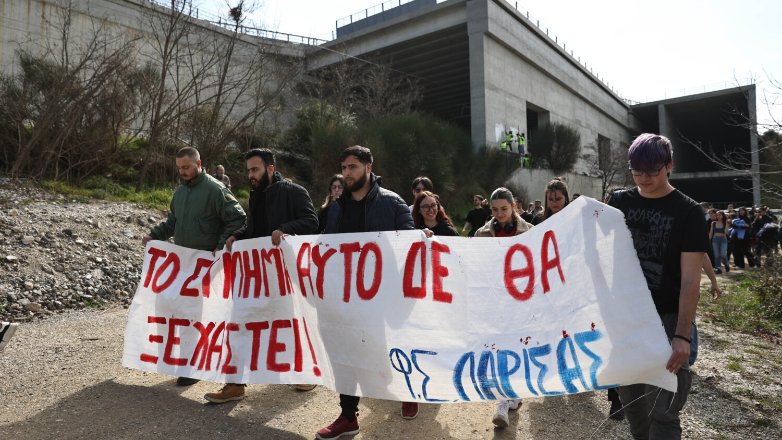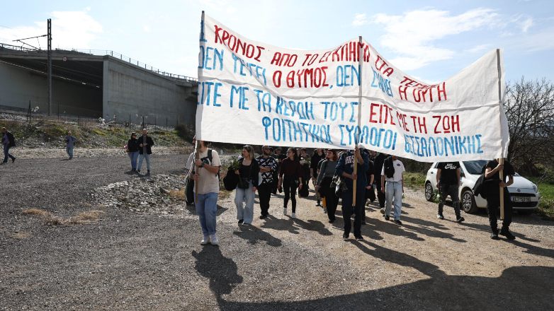 Τα πανό των φοιτητών για τον έναν χρόνο από την τραγωδία στα Τέμπη