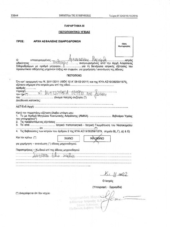 Τα ιατρικά έγγραφα που πιστοποιούν πως ο μηχανοδηγός ήταν απολύτων λειτουργικός και ικανός: