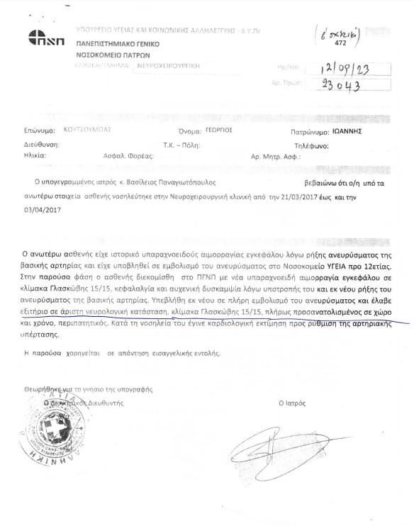 Διαμαρτυρόμαστε εντόνως για την άνω συμπεριφορά του ανωτέρω Βουλευτή και όσων συμμετείχαν στην παραβίαση του ιατρικού απορρήτου και κυρίως στην αλλοίωση του περιεχομένου των ιατρικών εγγράφων και τους καλούμε να παύσουν εφεξής κάθε αντίστοιχη μειωτική πράξη αναφορικά με τον θανόντα συγγενή μας, ιδίως δε, όταν τα λεγόμενά τους δεν συνοδεύονται από αντίστοιχα αποδεικτικά στοιχεία.