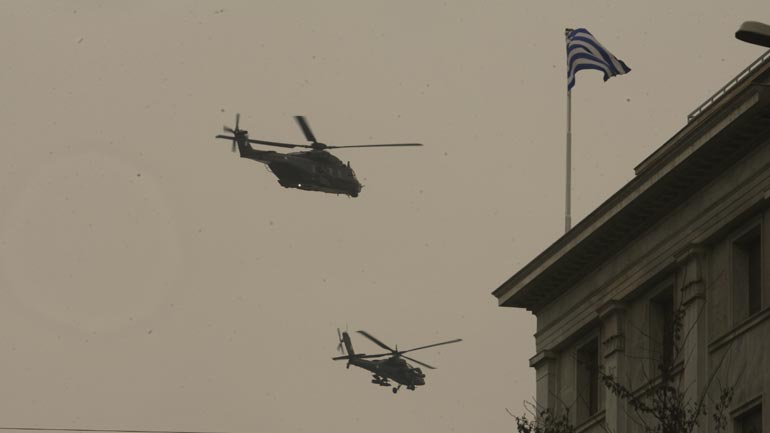 Εντυπωσιακοί ήταν και οι σχηματισμοί και ελιγμοί των εναέριων μέσων των Ενόπλων Δυνάμεων.