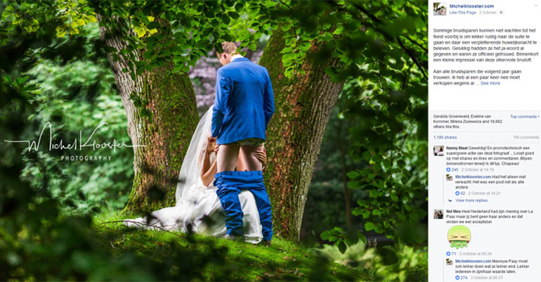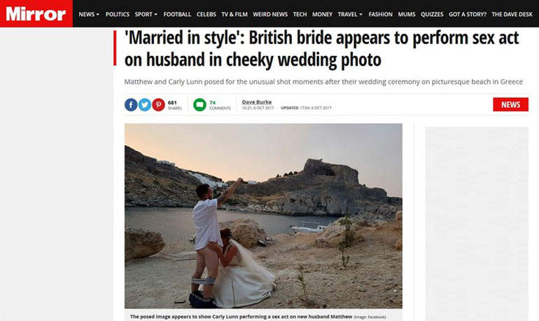 Οι φωτογραφίες του ζευγαριού ανέβηκαν στην προσωπική σελίδα της νύφης Carly Lunn στις 5 Οκτωβρίου και ο βρετανικός Τύπος «αλίευσε» την επίμαχη φωτογραφία.