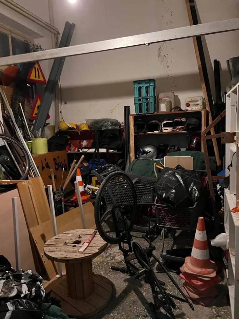 Στο χώρο βρέθηκαν και κατασχέθηκαν 29 ρόπαλα, τσεκούρι, κράνη, αντιασφυξιογόνες μάσκες, δελτία ταυτότητας που δεν ανήκουν στους συλληφθέντες, μικροποσότητες ναρκωτικών ουσιών, κιβώτια με πέτρες και υλικά κατασκευής αυτοσχέδιων εκρηκτικών μηχανισμών.
