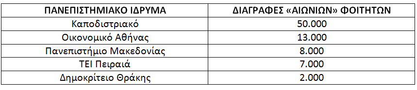 Εκτός ΑΕΙ και ΤΕΙ βρίσκονται ήδη 80.000 «αιώνιοι» φοιτητές, καθώς το όνομά τους δεν περιλαμβάνεται πλέον στα μητρώα των πανεπιστημιακών ιδρυμάτων της χώρας.